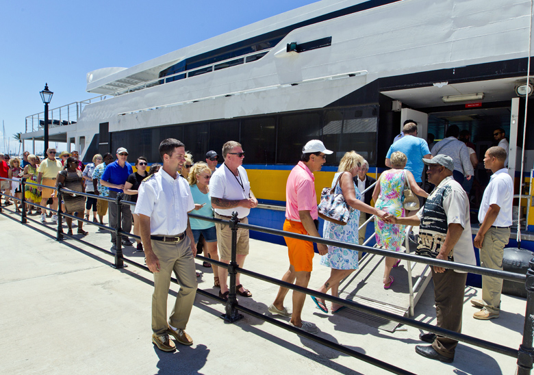 The high end ferry received a warm reception from visitors during its four round-trips for the day. And Jr. Minister Bascome was on hand to greet many of them.
