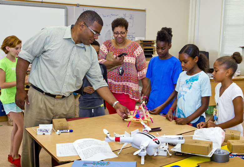Minister Rabain met with students enrolled in the four-week course held at CedarBdridge Academy. Students have been in engaged in learning digibotics/robotics, performing arts, gaming and a renewable energy challenge.