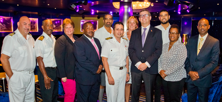We are joined today by representatives of the host port the West End Development Corporation; the Bermuda Tourism Authority, the Bermuda Chamber of Commerce, ship’s agent Meyer Agencies, Department of Marine & Ports and the Ministry of Tourism, Transport & Municipalities. You will find Bermudians are very accommodating and I expect that the experiences of your passengers ashore will rival the exciting times they have aboard the Carnival Vista.