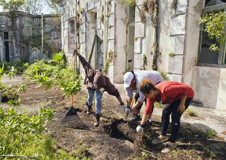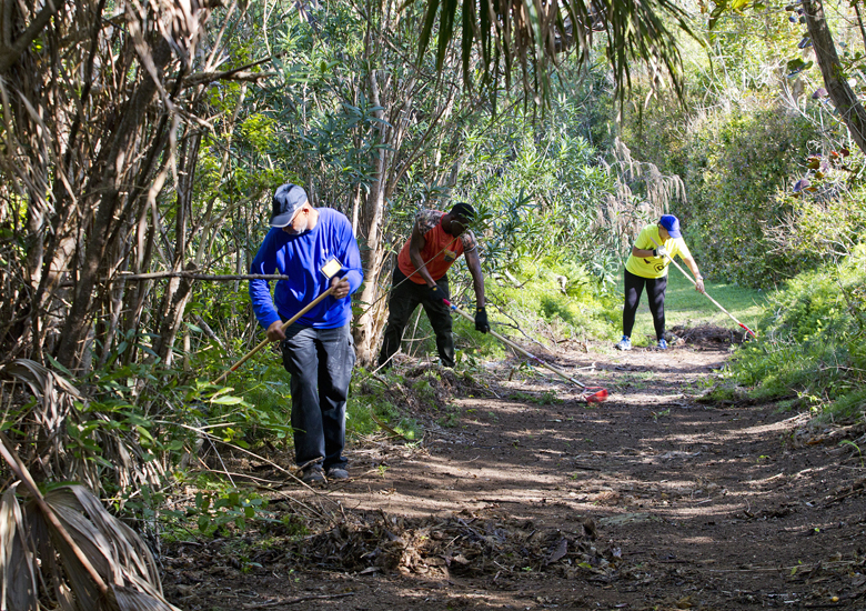The Minister of Social Development and Sports the Hon. Nandi Outerbridge JP MP was on-hand to assist volunteers with removing some of the overgrown foliage from the site.