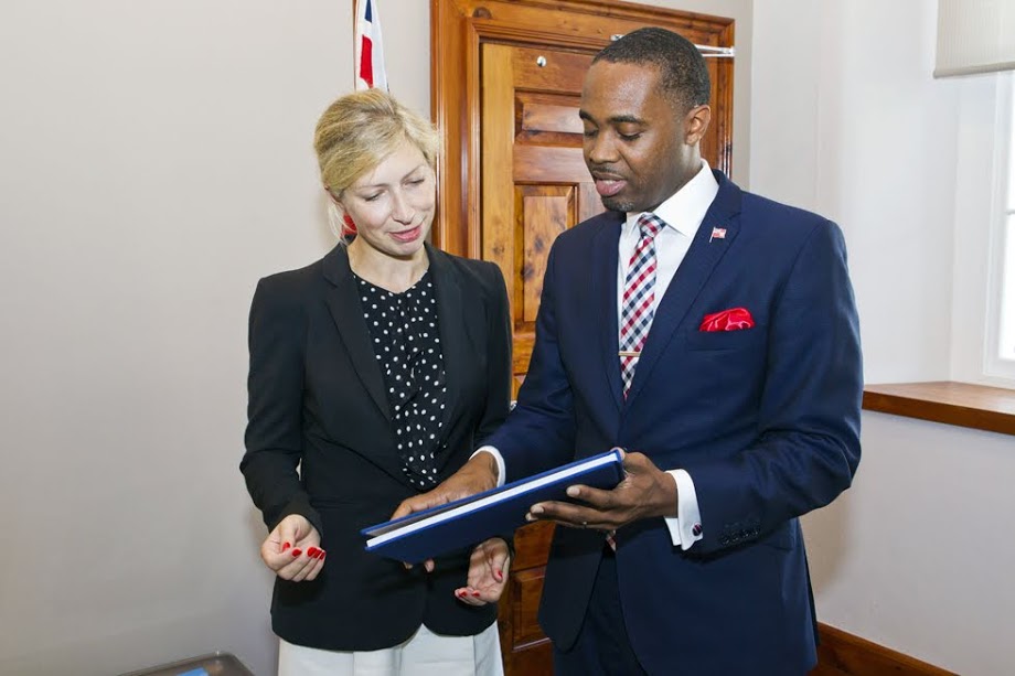 Premier of Bermuda and Minister of Finance, the Hon. E. David Burt JP MP welcomed to the Island the Consul General of France in New York, Mrs. Anne-Claire Legendre, during a visit to the Cabinet Office.