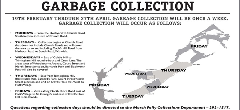 -As you are aware, the Ministry of Public Works advised of once per week garbage collection. The new schedule is from Feb. 19th – Apr. 27th.