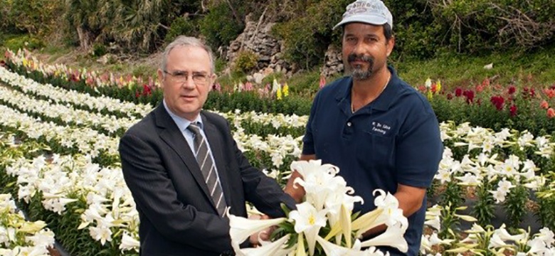 - Press ReleaseThe Governor, Mr John Rankin CMG, participated in the annual picking of Easter Lilies for Her Majesty The Queen. This year’s Easter Lilies were grown by Manuel DeSilva Jr (pictured with the Governor) on property which his family has farmed…