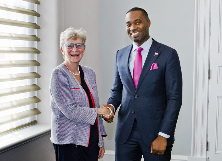 Premier and Minister of Finance the Hon. David Burt JP MP met with her at the Cabinet Office and the Deputy Premier and Minister of Transport the Hon. Walter Roban JP MP met with her separately at the Ministry of Transport Headquarters at TCD.