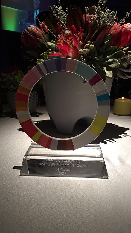 Distinguishing itself on the global stage, Bermuda once again won the Champion Catalyser Compass Award at the Global Entrepreneurship Congress 2017 in Johannesburg last night. The Award celebrates the country with the most Global Entrepreneurship Week (GEW) partners per capita. This is the fourth time that Bermuda has received the award since Bermuda began holding GEW in 2008.
