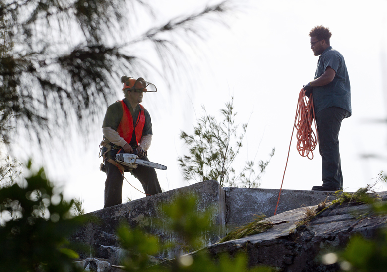 The Minister of Social Development and Sports the Hon. Nandi Outerbridge JP MP was on-hand to assist volunteers with removing some of the overgrown foliage from the site.