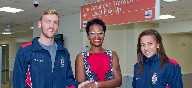 Earlier today some of Bermuda's Olympic athletes arrived back in Bermuda following their participation in the 2016 Olympic Games in Rio de Janeiro, Brazil. The Junior Minister for Social Development and Sports Nandi David JP MP was on hand to greet them and congratulate the athletes on their efforts.