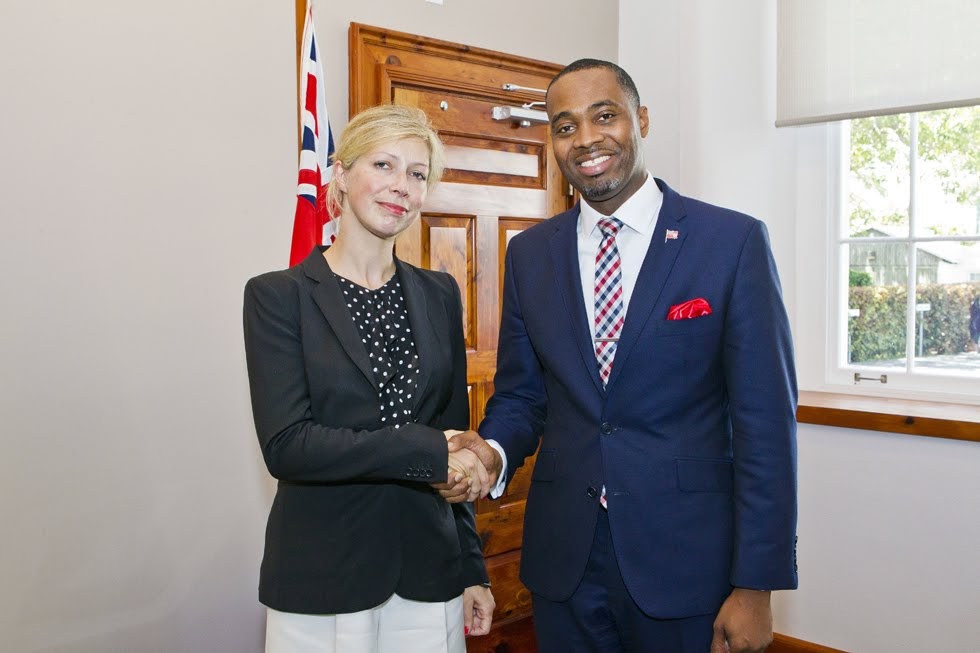 Premier of Bermuda and Minister of Finance, the Hon. E. David Burt JP MP welcomed to the Island the Consul General of France in New York, Mrs. Anne-Claire Legendre, during a visit to the Cabinet Office.