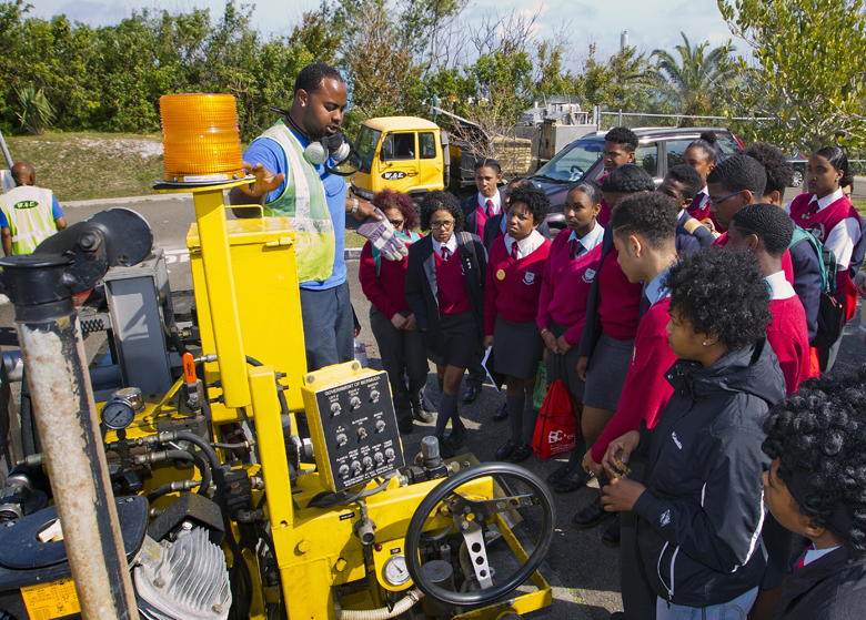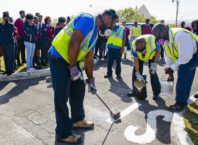 The Department of Works and Engineering were one of many employers who attended the fair to offer information to students about a multitude of careers. They also gave live demonstrations of their work roles and duties including road marking (pictured).