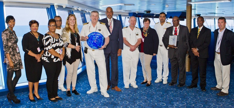 Tourism officials greet the Norwegian Epic on its inaugural visit